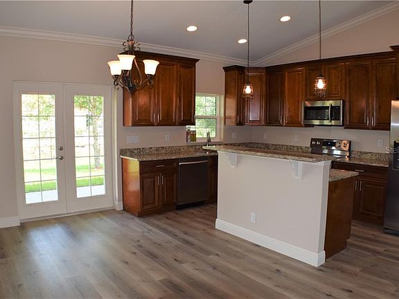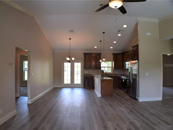 - Interior Features: Ceiling Fans(s), High Ceiling(s), Vaulted Ceiling(s), Crown Molding, Walk-In Closet(s), Open Floorplan, Solid Surface Counters, Solid Wood Cabinets