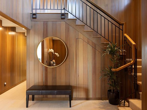 Thoughtfully designed with a timeless modern aesthetic, the residence showcases an open, light-filled floor plan framed by floor-to-ceiling windows. The main house features three spacious bedroom suites, complemented by a fourth private-entry suite below, perfect for guests or extended stays. Warm clear-heart fir walls, open-beam ceilings, and natural textures bring a sense of organic elegance throughout. The open kitchen and family room are ideal for relaxed gathering, while the expansive deck creates a seamless indooroutdoor flow for effortless entertaining.