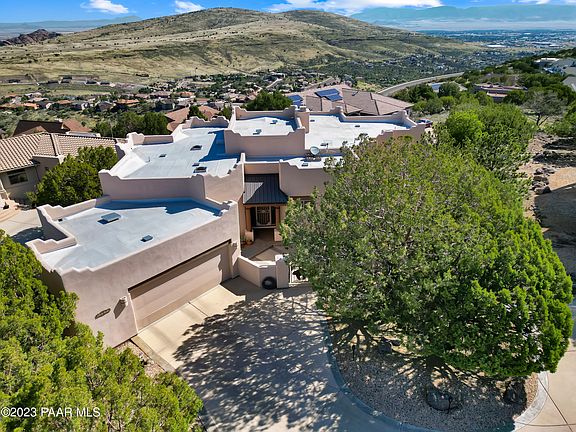 Are you tired of looking at cookie cutter homes that all look alike? Check out this spectacular beauty nestled in the subdivision of Yavapai Hills. This gorgeous one-of-a-kind custom home has been pre-inspected. Report is under docs. Home offers stunning panoramic views, including Granite Mountain, Glassford Hill, and Mingus Mtns. This beautiful adobe-style home offers 2,545 square feet with customized mission-style cabinetry and charming Southwest tile. Home sits on 1/3rd of an acre surrounded by trees and nature. Enjoy watching the deer walking by from the huge Trex deck which wraps the back of the home. Enter the home from a great courtyard area into the large open living area, which comes with a huge custom adobe-style fireplace, built-in shelving, and entertainment center.