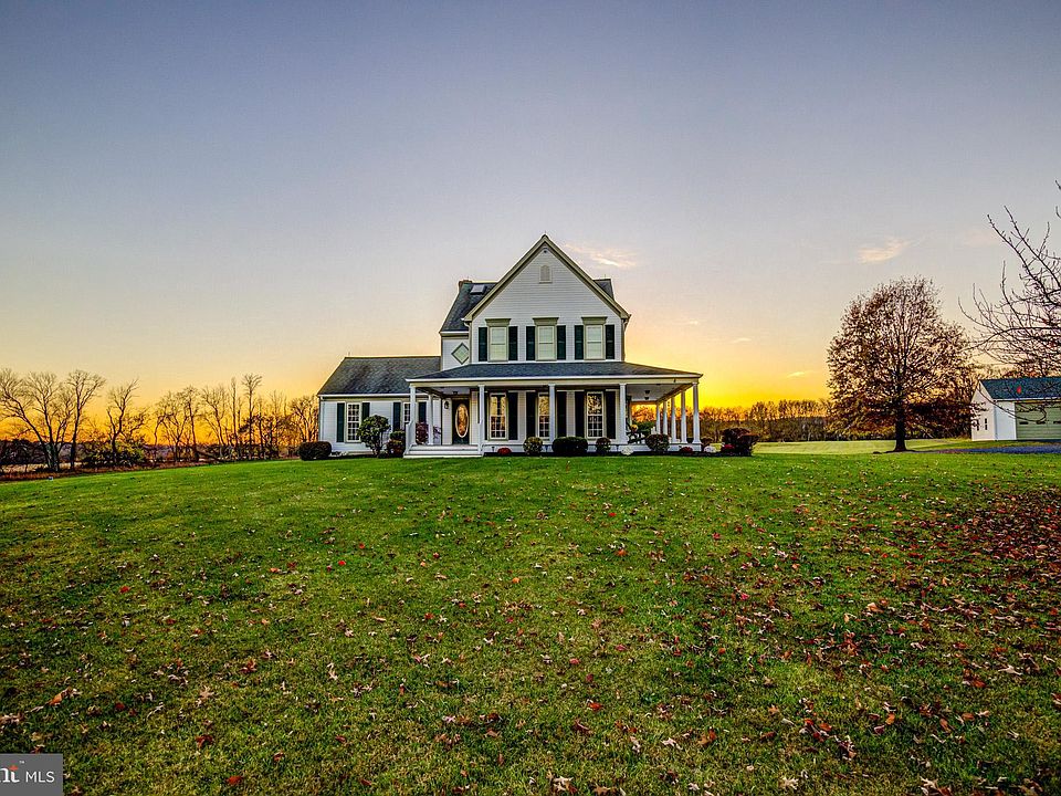 Strolling up the driveway, you will experience the breathtaking views and a serine atmosphere this property offers. This is a unique property that offers so much potential. Welcome to a beautiful Victorian custom built home that was built by the one only owner. There were no short cuts taken regarding materials and steps which provide longevity and quality. As you enter you will notice beautiful hardwoods on the floor and stunning arched framing at each entryway. Brand new bay window and french doors in the formal dining room exit to the stunning wrap around porch which is made of solid composite material which will never rot. The kitchen has just been updated with a modern country color pallet, as well as, Quartz countertops, a new stainless steel sink and stainless steel appliances, a new chefs faucet, septic safe garbage disposal, two very large pantries/storage closets, and updated lighting. Main floor has a large bedroom that is almost 500 sq feet and could be virtually any room that you want it to be, for example, it is used as large game room currently and even fits a regulation size pool table!! Throughout the exterior and interior of the house you will notice all updated lighting to fit the country chic style which gives the property that rustic yet modern persona. Freshly painted throughout with a beautiful light and bright neutral paint that will match virtually any color pallet and gives a bright and open presence, The owners suite has a medically useful therapeutic jet tub that is great when you may have aches and pains as well as a vanity area that is separate from toilet and shower/tub combination. ALL the windows are new and have a transferrable LIFETIME WARRANTY from Thompson Creek! The roof on the house and the oversized garage were replaced less than 10 years ago and have 50 year warranted shingles. The walk-out basement has the rough in for a bathroom, and is prepped for a fireplace or wood burning stove if desired. The oversized garage has plumbing that is already joined with the septic line and is roughed in for a bathroom. There is also a wood burning stove in the garage/barn, electricity, and running water so the options for this huge building are endless. Behind the garage is a large shed which holds larger farm equipment, such as a riding lawn mowers or tractors etc. The potential for this large property are endless with NO HOA! Close to the new community center which will have a pool and several more amenities as well as Gas Stations, shops, and restaurants. The MARC train is less than 5 miles away for commuters. There is a farm to table community which is right here in town!! PROPERTY HAS HIGH-SPEED INTERNET which is COMCAST XFININITY!!! Don't wait to come and check out this stunning property.