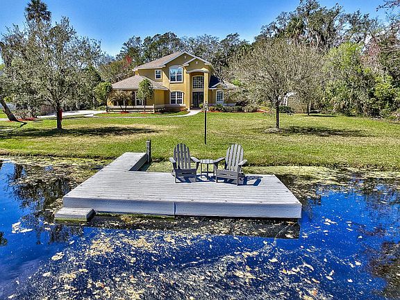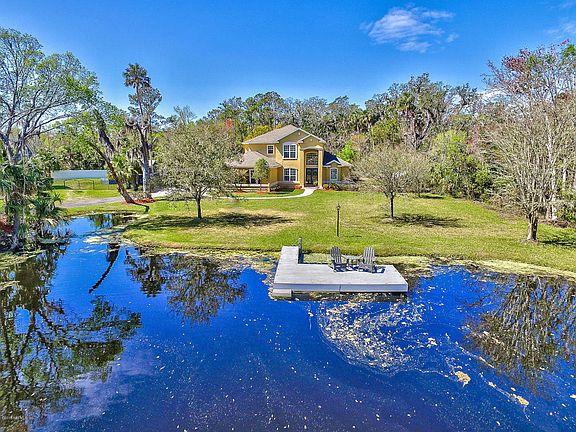 Private Sanctuary without HOA Rules but Minutes to the Beach or Intracoastal Waterway & in PVB School System! This secluded Eden will amaze with it's peace&tranquility in the heart of PVB. Travel down the private, hidden road past the serene lake with private dock to the last home at the end of the culdesac surrounded by picturesque Old Oak and Cypress. Gardening, Bird Watching, Kayaking, Sailing can all be found at this Nature Lover's Paradise. Custom built estate with large open floorplan,soaring two story ceilings; exquisite, shining stone floors leading to oversized Great room with custom builtins&floor to ceiling windows for cheerful sunlight& scenic views. Gourmet Granite Island Gas Kitchen. Land, Land & More Land! Screen Pool and Summer Kitchen for enjoying this Florida paradise