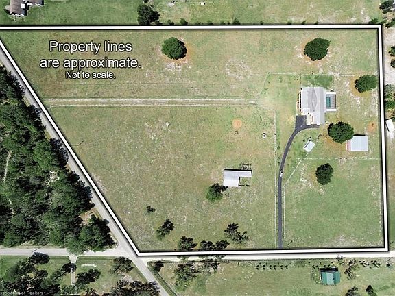 BRING YOUR HORSES, COWS, CHICKENS, DOGS & THE KIDS - THERE'S ROOM FOR EVERYONE! This property consists of a spacious 4 Bedroom/4 Bath Pool home, barn, a Workshop, 4 Fenced Pastures and much more on almost 14 Acres! The home features 3,696 SF of living area & 6,930 total SF, and features a formal living & dining room, plus a kitchen with a huge dining area & a breakfast bar, large pantry, wood cabinets & a new refrigerator. Just off the kitchen is a humongous, tiled 26'x40' family/game room with twin his & her bathrooms. Imagine all the fun you can have in this room with a pool table, ping pong table & even corn hole boards - it's that big! It also has a wet bar & refrigerator for parties, plus it opens up with 2 sets of sliding glass doors to the spacious 36'x55' lanai & pool area. The 15'x30' inground pool is completely private with a surrounding wall & screen enclosure. The owner's suite features a corner brick fireplace, walk-in closet and a large bathroom with step-up jacuzzi tub, walk-in shower, dual sink vanity + a third separate sink & dressing area. There are also sliders opening to the pool & a separate door leading to the fenced side yard. The 3 guest bedrooms and bath are on the other side of the house for added privacy. This home also features two A/C systems, a metal roof, a 2-car oversized garage w/golf cart door, window awnings, brick front elevation & a long open porch with white columns which adds to the curb appeal. The property itself includes a 12'x20' utility/workshop w/electric & golf cart door, plus a barn w/cement floor, 4 separate fenced pastures & automatic watering system for your animals, and 2 separate driveways. All of this & more, on just under 14 Acres, will have you humming "Green acres is the place to be, farm living is the life for me"!!