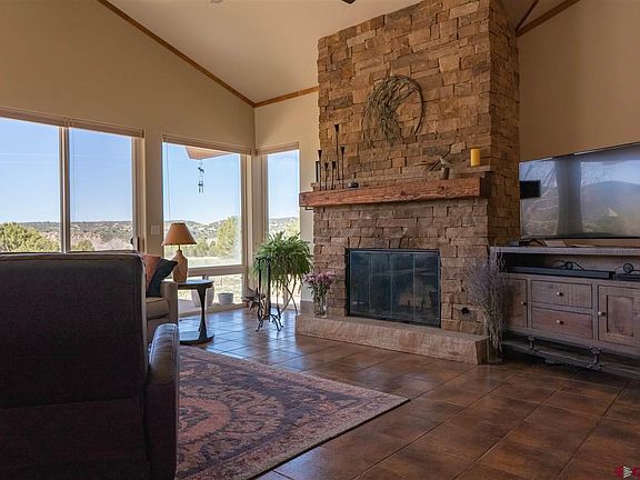 Newly remodeled Ranch-style home located next to Navajo Lake and Navajo State Park. Beautiful views towards the lake, the mountains, and the valley. Upon entering the home, you are greeted by a spacious sun room / den with abundant windows for loads of natural light. The living room features a brand new floor to ceiling stone wood fireplace with views towards the lake. The kitchen features a breakfast bar island, matching stainless steel appliances, a five burner gas stove and granite counter tops. Enjoy the warmth of the radiant floor heating during snowy days combined with the cost effective passive solar energy. From the living room there are large French doors leading to a spacious master bedroom with an oversized walk-in closet; an ensuite bathroom with double vanity, a separate shower and a jetted tub with custom tile surround. The two additional large bedrooms are located next to the second full bathroom. The home has a two car attached garage, a large detached carport, a shed, and an RV parking area with hookups. Remodeled in 2018, the $50,000 of upgrades include: Granite countertops and backsplash in the kitchen and bathrooms, a large custom floor to ceiling stone living room fireplace, the complete remodel of the master bathroom, new lighting fixtures and ceiling fans throughout the house, custom cordless top down bottom up window blinds, five burner stove, and the brand new washer and dryer set that transfer with the sale.