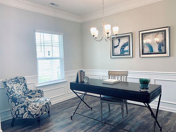 Our highly popular Buffington plan delights with its massive 2nd floor Primary Suite is privately located on the same level as the 3 additional bedrooms. Unexpected luxuries on the 1st floor include a planning desk, mud room, and centerpiece kitchen island opening to the family and dining rooms. 9' ceilings throughout the entire home. Covered rear patio leads to a spacious backyard. Upgrades adorn the entire home showcasing 2-piece crown molding, wainscoting, Glacier Gray cabinets & enhanced vinyl plank.