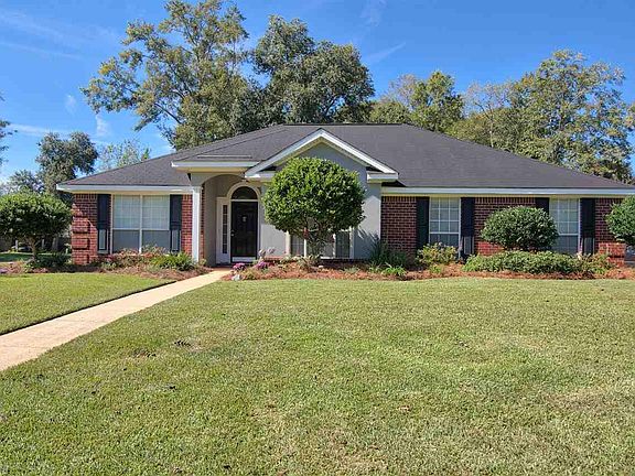 Perfectly located on a large corner lot in the Champion Hills subdivision in West Mobile, this 4 bedroom, 2 bath home features a spacious and inviting living and outdoor space. The family room, boasting a high vaulted ceiling and gas starter fireplace, leads to a bright eat in kitchen w/bay window and large countertop bar overlooking the family room. The formal Dining Room off of the grand foyer connects to the Kitchen. A king-sized master suite with en-suite double vanity bath includes a marble garden tub, separate shower and 2 walk-in closets. The main hallway features 3 additional bedrooms along will a dual vanity full bath. One of the bedrooms could be an ideal office or special guest room with a cathedral ceiling. The large shaded back yard includes an expanded deck off of the patio making it perfect for entertaining. With new bedroom carpet, luxury floor in master bath, and fresh paint throughout, this home is a must see. Make your appointment today!