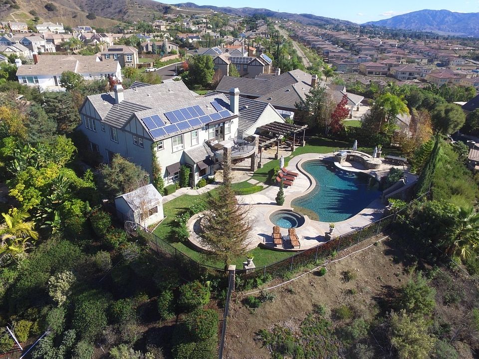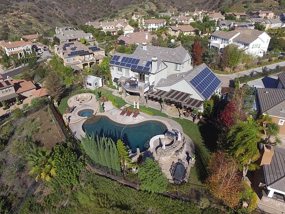 One of a kind, extremely private home featuring stunning views and resort style backyard, situated on over 1/2 acre in Kerrigan Ranch. This elegant 5 bedroom, 6 bathroom Yorba Linda estate is discreetly located at the end of a cul-de-sac and features a 200 ft privately gated driveway offering plenty of guest parking. The downstairs interior boasts cathedral ceilings, formal living and dining room, serene courtyard, and gourmet chef's kitchen which opens to the cozy family room. Extra large bonus room off the family room was recently renovated in 2018 into an entertainment bar and lounge with light up quartz counter tops, custom cabinetry, engineered wood flooring, built in refrigerators, Sonos speaker system, custom light fixtures and includes access to the backyard and a private bathroom. One en-suite downstairs bedroom can easily be converted into a casita with a separate entry. 3 secondary upstairs bedrooms offer their own private bathroom and walk in closets. Master includes, walk in closet, over-sized tub, and large walk out balcony with unobstructed city light and Catalina views. Paradise has been found in this spectacular, totally private backyard. Amazing 270 degree views, immense pool, swim up bar, 16 person spa, water slide, Sonar Guard pool security, built in BBQ with large center island, Sonos surround sound throughout and plenty of grassy space. Four car garage with lift to hold a fifth car and RV parking. 51 solar panels make this home very energy efficient.
