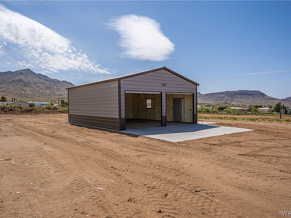Over 1 acre lot with : *Fully insulated 24x30 RV garage *Large front concrete pad *30 foot side RV pad *50 amp breaker inside *50 amp plug for your RV outside *RV hookups including - Water (hose bibs) and dump *1,250 gallon septic tank has already been installed that would comply with a future 4 bedroom home *Pre Plumbed for future toilet, shower, sink and small 10x10 kitchen. Close to pavement, and easy access from HWY 68. Perfect spot to park your RV year round, or just for the season. Safe space to store when not in use. Or, build your dream home or install manufactured on this beautiful lot. Mountain views, and just a short drive to Laughlin Casinos and the Colorado River! Owner carry terms with at least 40% down. Seller is a licensed real estate agent.