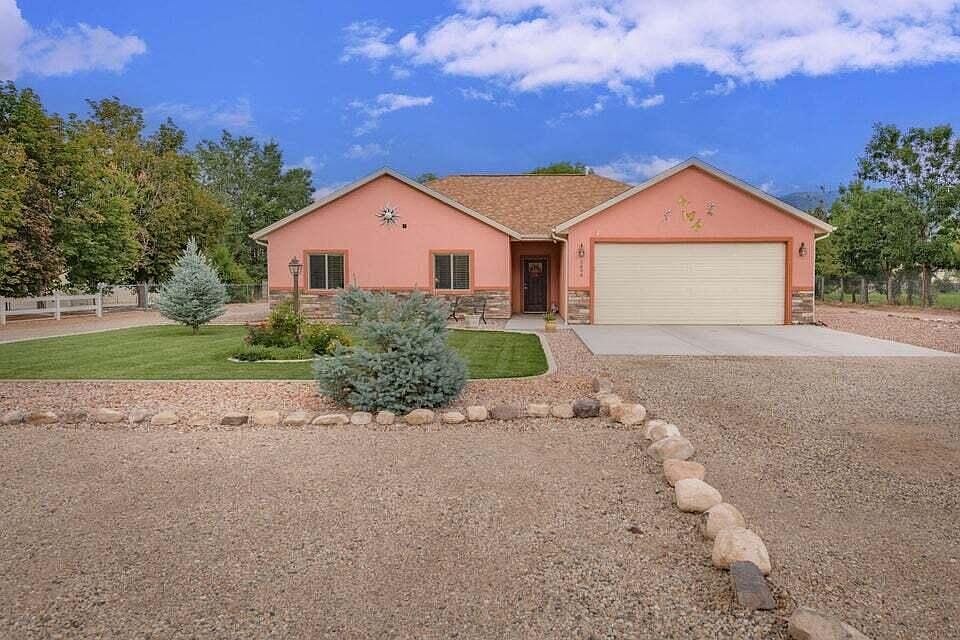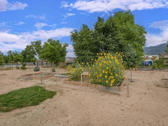Spectacular mountain views and sunrises/sunsets. This home has many unique features and upgrades including raised panel cabinets throughout the home w/ spice rack; LVT flooring and carpet in bedrooms and living room(LR); plantation shutters LR;; Day closet; laundry rm; ceiling fans; walk-in shower; bartn door in Master BR; 9' ceilings; water softner; reverse osmosis in Kitchen; RV Parking w/ water/electric; covered patio w/ stubbed gas line; beautifully landscaped w/ 3 fruit trees & auto sprinklers; large 2 car garage; new 50 yr roof and gutters and new dishwasher