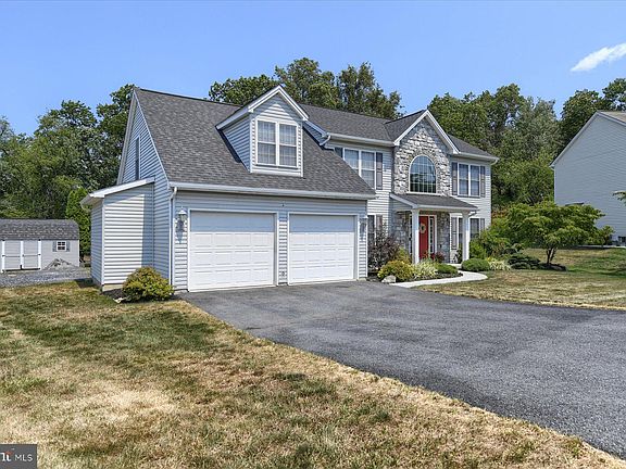 Don’t miss out on this beautiful well-maintained 4 bedroom home on 1/2 acre lot with trees in rear for privacy. Brand new roof (2024), A/C (2023) and stunning family room addition (2022) features cathedral wood ceilings, an abundance of windows that flood the room with natural light, an electric fireplace for cozy nights, an office nook and double glass doors that lead to the living room. Sliding doors provide easy access to the covered deck for entertaining which is also adjacent to the well-appointed kitchen that boasts newer stainless appliances, granite countertops, tile backsplash, a center island with seating, a pantry, and additional space for a dining table. The formal dining room features beautiful wood flooring, and the inviting living room also with wood flooring, includes a gas fireplace. On the main level, you'll find a convenient laundry room, ½ bath and a versatile office/den/playroom. The primary suite on 2nd floor has a large walk-in closet and a private bath with newer shower while the three additional bedrooms offer versatility, with one featuring built-in cabinets and counter space – perfect for a second family room! The unfinished basement with over 1,000 square feet, provides potential for future living space and the oversized 2-car garage with workbench and cabinets, features a second staircase to the basement for easy access without going through the main house. Outside, two sheds offer extra storage, while a relaxing firepit beckons you to enjoy the private backyard (and wildlife!). This home offers convenient access to major highways, shopping, and restaurants, while being situated in a quiet and peaceful quaint neighborhood.