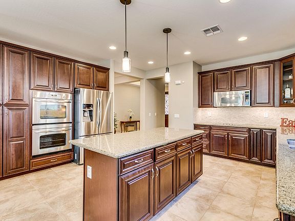 FORMER MODEL, this home comes with extensive upgrades. Gourmet kitchen, GE Profile Appliances, double oven, 42'' upgraded cabinets and drawers, granite countertops, stone backsplash, under cabinet lighting, 8 ft tall doors, custom shutters in every room, closets by Classy Closets, 18'' floor tile, exterior video security system, sensors on every window and door, carbon monoxide and rolling smoke detectors, built in audio and surround audio, 5 other speakers adjustable around the home, special tech upgrades everywhere. 3 zone Nest controlled, app accessible, heating and cooling. 6 zone exterior watering system with access points every 5 feet. Whole house soft water. R/O system. Trane AC/heater. Exterior timed lighting. The list goes on and on. CALL US TO SET UP A VIEWING.
