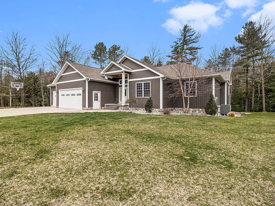 If you're looking for a home that combines luxury and nature, look no further than this stunning property located in Hamlin Township. Boasting a beautiful view of a babbling creek and situated on 7.53 acres of land, this home features a spacious 3-car heated attached garage and an additional 3-car detached garage, as well as stunning wood floors, cathedral ceilings, and a finished walk-out basement. With both air conditioning and a heat pump, you'll be comfortable no matter the season.