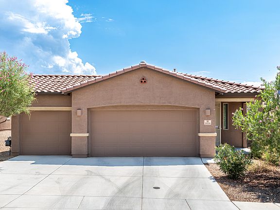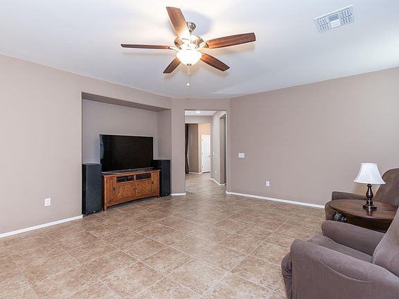 Spectacular Mountain Views from this gently lived in 3bd/2ba/2016 sq. ft. home boasting 9' ceilings, 18'' ceramic floor tiles, custom paint, large covered porch, spacious covered patio and 3-car garage in the highly regarded community of Eagle Crest Ranch. Upon entry, the Foyer guides you to the massive Great Room big enough for the largest of gatherings! The upgraded Kitchen boasts Stainless Steel appliances, Granite counters, large Pantry, recessed lighting and plentiful cabinets. The spacious Master Suite includes separate soaking tub & glass shower, dual vanities and immense walk-in closet, all isolated from the 2 guest bedrooms & guest bath. The fenced low-maintenance backyard with synthetic turf can be expanded forward to the garage for a Pool, Spa, or let your imagination run wild!