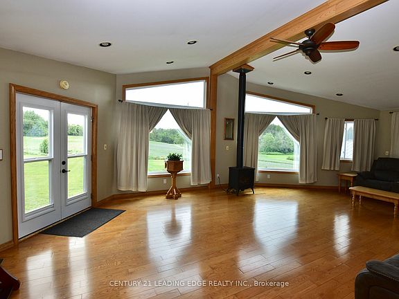 Welcome to your dream retreat! Nestled amidst nature's finest, this large home with an abundance of space offers unmatched comfort and style. Panoramic views in the family room let you take in the breathtaking beauty of the natural surroundings and immerse yourself in the tranquility of the outdoors from the comfort of your own home. Embrace the allure of nature with approximately 100 acres of land right at your doorstep. Enjoy a stunning forested area, a fenced pasture perfect for your four-legged friends, workable land with random tile for agricultural endeavours and 4 ponds for fishing, relaxation and swimming! The Maitland River gracefully flows along the back of the property, offering a serene ambiance and enchanting water sounds. There are many outbuildings including the "man" cave which is thoughtfully decorated. And adventure seekers will appreciate the rustic charm of the cabin, providing a cozy haven to retreat to after exploring the vast wilderness.