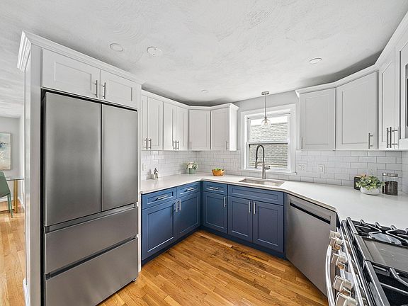 Newly renovated 3 bed unit sitting on the first floor of an elevated home just minutes from Revere Beach. All new quartz counters, kitchen cabinetry and stainless steel appliances along with a renovated bath complete with quartz vanity top and custom tile shower. An open living dining room space offers a perfect setup for entertaining. Three spacious bedrooms all with gleaming hardwood flooring. Gas cooking and heating along with central AC.