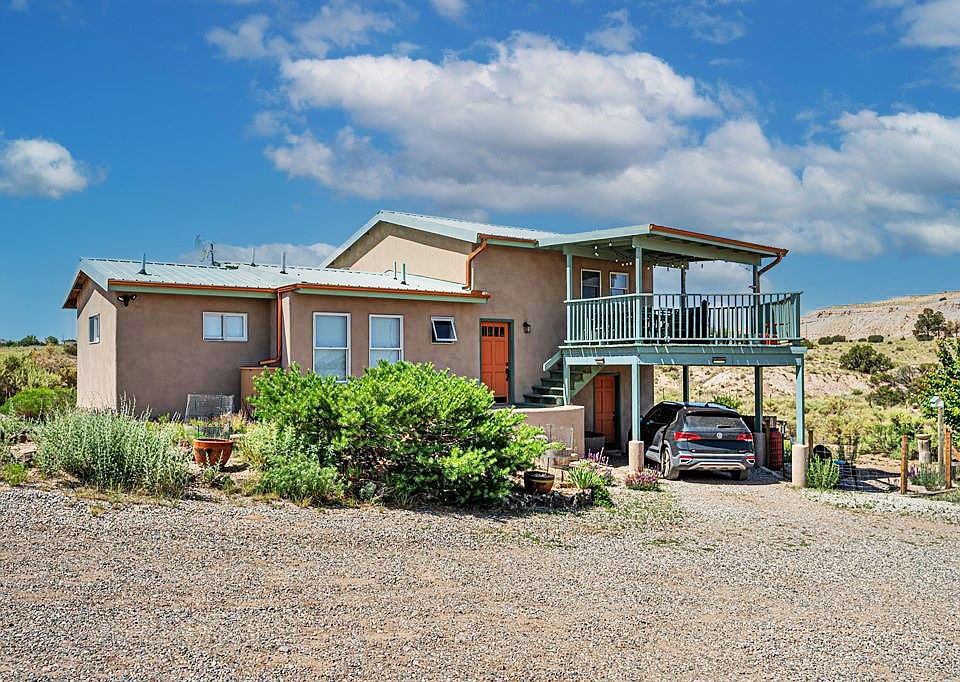 Northern New Mexico charmer is the ideal home for LANL commuters. This inviting 2.5 acre property is thoughtfully sited to take in the striking high desert terrain through large windows and the outdoor viewing deck. The 1,750+/- square feet, 2 bed and 2 bath home will enchant you with lots of natural light, beautiful tile with step riser accents, hardwood flooring, recessed lighting, and high ceilings to augment the functional split-level floorpan. An open concept living area features a generous kitchen with stainless steel appliances and custom cabinetry, sky-high shelving in the dining area, and a cozy bay window makes for the perfect perch for coffee. Offering comfort and privacy, the owner’s suite includes a spa-like bath with soaking tub and walk-in shower. The second bedroom adds flexibility for guests by converting the functional office space with a Murphy bed. Downstairs you’ll find a large heated and finished bonus room with polished concrete floors, housing the laundry area, mechanical room, and with outdoor access, can be a third bedroom or second living room/den. For more useful space, a detached shop serves for storage and hobbies. A short distance from shopping at the Pojoaque Supermarket, LANL, and other local conveniences, this impeccably maintained home combines serenity with accessibility. Whether you're seeking a peaceful retreat or a well-connected residence, this property is an excellent opportunity to enjoy the best of Southwestern living. Don't miss your chance to make this gem your next home. **details as provided by Sellers.