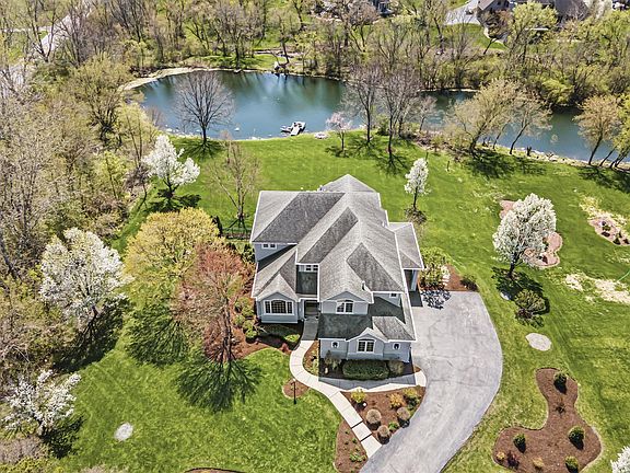 Extraordinary executive home on 1.8 acre landscaped lot with private pond in Three Lakes of St Charles! Award winning St Charles schools including St Charles North High School. Mature landscaping, large deck, stone patio with pergola, hot tub, private dock and water views. 3-car attached garage. Step inside to find vaulted two story ceilings, refinished hardwood floors, all new carpet, modern neutral decor and tons of natural light. Expansive living room and adjacent formal dining room. Gourmet eat-in kitchen includes granite countertops, stainless steel appliances with convenient double-oven, island with breakfast bar and walk-in pantry. Comfortable family room with gas log fireplace and peaceful views. 1st floor office includes coffered ceiling and built-in bookcases. Upstairs, bedroom sizes are generous and include the vaulted master suite providing 2nd fireplace, walk-in closet and spa-like bath with double bowl sink, whirlpool tub and separate shower. Offering even more living space is the full finished walkout basement with rec room and 3rd fireplace, full kitchen with wet bar, 5th bedroom and full bath. True luxury awaits! Serene private location and superior craftsmanship makes this home a MUST SEE!