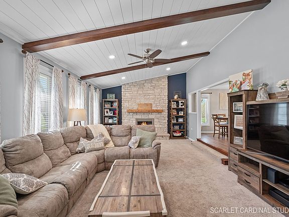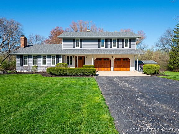 MULTIPLE OFFERS! HIGHEST & BEST DUE BY 5PM MONDAY, APRIL 22ND. Meticulously Updated & Very Well Maintained 2 Story Home With 3 Spacious Bedrooms & 3 1/2 Baths On A Picturesque & Private Wooded One Acre Lot! The Beautifully Remodeled "Eat In" Kitchen Boast Custom Cherry Shaker Style Cabinets, Quartz Counters, Tile Backsplash, Under Cabinet Lighting, Recessed Ceiling Lighting, Upscale Tile Flooring & High End SS Appliances Flows To The Awesome 37'X12' Deck Overlooking The Pristine Backyard Perfect For Entertaining Large Or Small Groups Of Friends Or Family! Inviting 16'x5' Covered Front Porch Welcomes You Into The Home Through The New Front Door Into The Updated Foyer Leading To The Light & Bright Living Room With Volume Decorator "Shiplap" & Beams Ceiling, Ceiling Fan, Recessed Lighting & Classic Floor To Ceiling Brick Fireplace With Gas Starter! Restructured Master Bedroom Includes 8'X7' Walk In Closet With Custom Organizers & Modern Sliding "Barn" Door Along With The Updated Private Master Bathroom With Custom Walk In Shower! Recently Finished English Style Basement With Plenty Of Natural Light Offers Open Concept Includes A Workout Area, Family Room With Fireplace & Home Office Area Plus Finished Storage Closet, Utility Room & Full, Updated Bathroom! Heated 2 1/2 Car Garage Has Newer Garage Doors & Access Door And Extra Storage/Work Bench Space! The Entire Home Has Been Remodeled But Some Of The News/Newers Completed Between 2017 & 2024 Include But Not Limited To All Kitchen Appliances, All Four Bathrooms, Recessed Lighting, Closet Organizers, Thermopane Windows, Sliding Glass Door, Levolor Cordless Blinds, Roof, Vinyl Siding, Soffits, Facia, Gutters, Insulated Garage Doors & Openers, Fresh Attic Insultion, White Washed Brick, Gas Forced Air Furnace, Central A/C, Well Pump, Pressure Tank, Water Softener System, Osmosis System, Shiplap Ceiling, Refaced Fireplaces, Entry Door, Front Concrete Stoop, Carpeting, Modern Tile Flooring, Custom Cherry Stair Post, Wrought Iron Spindles, Under Rail LED Lighting To Basement, White Panel Doors, White Trim Throughout, Upscale Waterproof Vinyl Flooring In Basement, Decorator Bricks & Limestone Landscaping Pavers, Ceiling Fans, Recessed Lighting, Additional Light Fixtures, Plumbing Fixtures & Much Much More All For The Next Owners Enjoyment! Awesome Private Location But Close To Schools, Shopping, Dining & Entertainment! Don't Miss Out On Seeing This One! Pictures Don't Lie As This Home Is A Perfect 10!