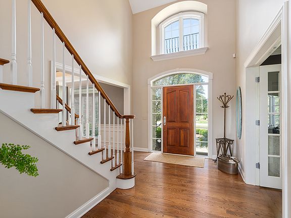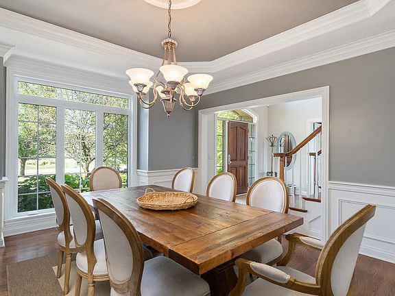 TRULY one of the most extraordinary lots in St. Charles! Situated on 1.67 picturesque acres of mature trees with WATER VIEWS, this Derrico home is the private oasis you deserve! Brilliantly designed with a thoughtful layout, luxurious finishes, and no detail spared, entertaining inside and out has never been more enjoyable! Modern hardwood floors throughout, extensive millwork, unique built-ins, and vaulted ceilings. Flanked by a sophisticated dining room and handsome office, the bright entryway opens to a soaring two-story family room w/ a wall of windows and double-sided fireplace. Stylish kitchen features high-end SS appliances, farmhouse sink, wet-bar, separate eating area and exterior access to the expansive wraparound deck. Master suite has fireplace and STUNNING bath w/ soaking tub and separate shower with rainfall shower heads. WALKOUT basement includes 5th bedroom and bath, theater & workout room. Fabulous in-ground pool with paver patio, hot tub, bar & grill! Incredible!
