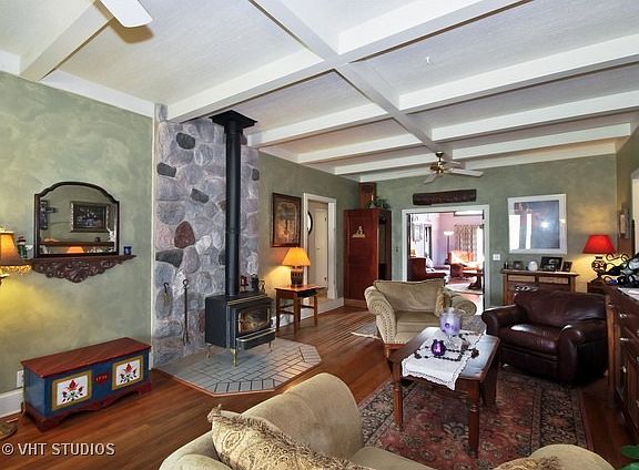 This has got to be one of the prettiest lots in St. Charles! Almost 2 acres backing to Ferson Creek. Vaulted ceiling in foyer, recently remodeled kitchen with SS appliances, granite counters and slate floors, beamed ceilings, step down living room with wood burning stove, den could be 5th bedroom, hardwood floors, skylights, and more! Make this your home and watch the gardens bloom! No covenants or restrictions
