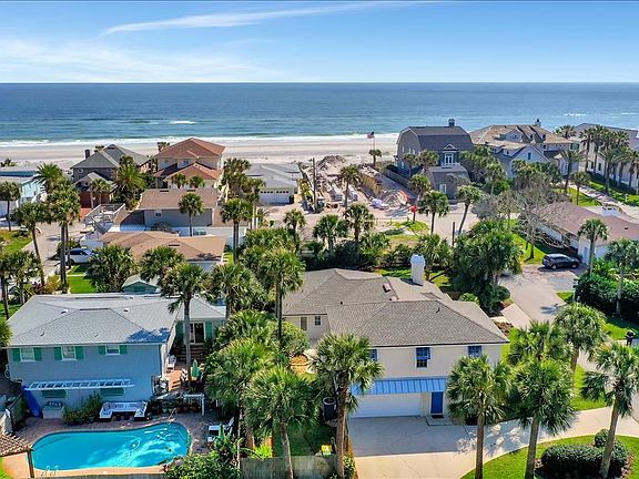 DON'T MISS THE VIDEO. Transcend to the tropics in this spacious coastal abode with traditional familiarity. Exceptional setting rich with verdant palms and soft coastal breezes just steps from the ocean. Relax when you are living on island time. Architecturally designed to invite natural light into every room of the home. Large yard along with the pool, patio and secluded outdoor living. Defined living spaces that flow seamlessly to create a space for the whole family to relax. Master, study/office and guest suite on main level. 2 more bedrooms on 2nd level. Corner lot with 2 car garage and plenty of parking. Enjoy beach living and commute to town in minutes. Walk or bike to the best shopping and dining South Jax Beach has to offer.