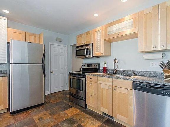 Opportunity knocks! Turn key half-duplex in superb Readville location. Totally renovated in 2007...making it's effective age about 9 years old. It feels like new construction. Gorgeous maple cabinet kitchen with slate/stone flooring, stainless steel appliances, and huge walk in pantry. Living room with hardwood flooring. 2 full baths on the 1st floor, one with antique claw foot tub. Upper level has master with skylight and 2 other bedrooms. Stunning fully tiled bath. Lovely yard space. 2 off street parking. Laundry and excellent storage in full basement. All gas. Stay cool this summer with central air conditioning! Walk to the Commuter Train. Walk to the park. Nearby conservation is great for walking, taking the dog for a walk, bike riding. Golf nearby. Blue Hills trails also nearby. Open House Thursday May 26th, 5:30-7pm and Sunday 12-130pm. This one will not last.