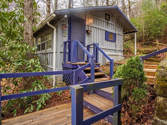 Weekend or Summer cabin with 2nd guest cabin. Located in a small community across the highway from the Cullasaja River and just a 2 minute walk to United States Forest Service. Outdoor space includes covered porch, covered decks and water feature. A lovely path leads you through a beautiful woodland garden which is situated behind the cabins. The main cabin has a wood burning fireplace in the kitchen plus a gas log fireplace in the living room plus one bedroom and full bath on the upper level. Just a few steps away is the guest cabin with a generous size bedroom and full bath. This is a great opportunity to own a cozy home with a bonus guest cabin to update and make your own!