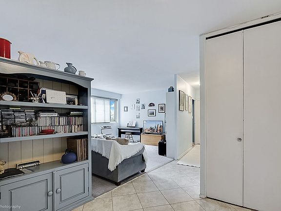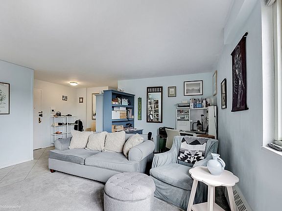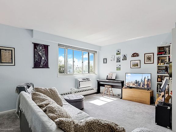 Welcome to this spacious two-bedroom/one bath unit located on the 4th floor of a beautifully maintained 11-story elevator building. This apartment has a comfortable practical layout, starting with the entry foyer which can be converted into a dining area; conveniently situated next to the updated kitchen which features lovely cabinetry and stainless steel appliances, including a dishwasher. The living room is bathed in natural light thanks to its oversized windows that offer an open angled view of Manhattan. Adjacent is an attractive home office, which was easily divided from the living room. The bright king sized main corner bedroom has large windows on each side; the 2nd bedroom, also with a large picture window, can easily accommodate a queen bed. There are 5 large closets offering ample storage throughout. Pet friendly (only one dog) Monthly maintence $622.58 includes heat, electric, gas and one storage cabinet.
