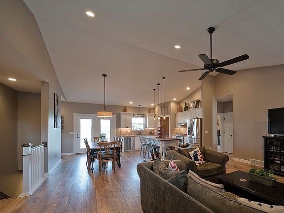 Newer construction in a growing subdivision of West Point! Lots of fine finishes in this terrific ranch with an open living room and kitchen, which brandishes granite countertops, stainless appliances, a large center island, and a built-in pantry. The remaining main level has 3 bedrooms and 2 baths, including the master suite with attached laundry. The finished lower level boasts 9' ceilings and offers a large family room, two additional bedrooms with egress, full bath, and plenty of storage! The attached 3 car garage is heated, and leads into the house with a charming entryway nook.