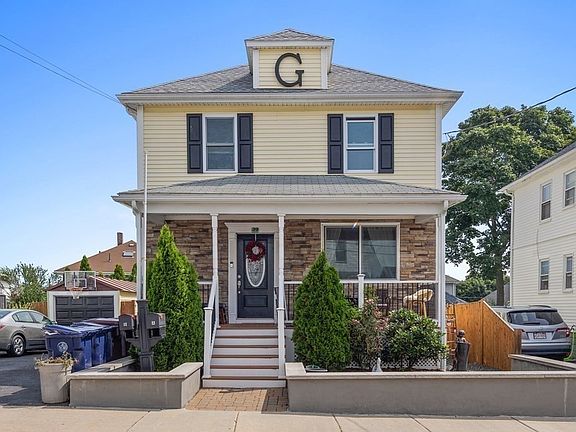 This beautiful, stoned-faced two-family home has plenty of personality and charm. Separate egress' for both units and well-landscaped yards makes for a picture-perfect home. Parking for two cars per unit is rare to find in this city! The first unit has upgrades galore, including laundry in-unit, a beautifully renovated kitchen with custom cabinets, stainless steel appliances, and a breakfast bar with granite countertops. An open floor plan with living & dining is ideal for entertaining. First-floor primary bedroom with an ensuite tiled bathroom and walk-in closet sets this home apart! Upstairs you'll find three ample-sized bedrooms with a fully updated bathroom. The completely renovated lower unit has custom shaker cabinets, stainless steel appliances, granite countertops, and a waterfall-style breakfast bar that flows right into the living room. Ample bedroom, with updated bathroom and laundry in-unit. Both units have central a/c.