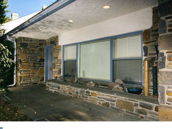 This mid-century modern stone-and-slate ranch nestled into the trees on one of Lower Merion's prettiest streets features the clean lines, airy feel, and period details that make this property such a find, plus all desired updates today's buyers are looking for. Beautiful outdoor spaces, privacy, and one-story living make this three bedroom, two bath home just right for family life, young professionals, and down-sizers alike. The partially covered flagstone terrace with its signature 50's style built-in planter complete with stylized rock garden provides a warm welcome to guests. Inside, an entryway leads to the living room where your eye is drawn to the deep-set picture window and the floor-to-ceiling stone feature wall with gas fireplace and built-in bookcase. Next move through into the dining room which brings the outdoors in, with glass doors and sidelights creating a window-wall with views and easy passage to the stone terrace and yard. Entertain here, dine al fresco, absorb the natural beauty, and play. Back inside, start meal-planning in the enormous renovated kitchen. More cabinets than you can fill, and beautiful granite counters, island, and desktop, plus extra deep sink and all stainless steel appliances including a Viking range and double ovens, plus another door to the terrace for easy grilling. Access to your two-car garage from here makes coming home a pleasure, and built-in laundry closet with separate built-in ironing station add even more convenience. Down the hall find three nicely sized bedrooms including a master with two deep closets and an en suite bath complete with a shower and a hall bath with a luxurious Jacuzzi for guests. Many storage options, including oversized closets and an attic. Brand new HVAC and brand new carpets in all bedrooms both in 2016. All woodwork and the master bedroom have just been freshly painted. This home offers a perfect marriage of period features and current amenities, with an ideal Main Line location just minutes from downtown Bryn Mawr, a quick walk to the train, an easy drive to world-class shopping and award-winning Lower Merion Schools!