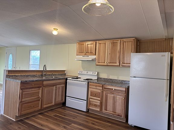 The home has new vinyl flooring throughout, new kitchen cabinets, a refrigerator, and a new deck! Electric heat, master suite with a walk-in closet and soaking tub. Well water and W/D hookups; lawn maintenance included! A pet may be considered with owner approval.