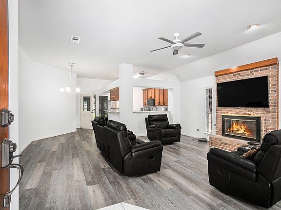 This charming Angleton home, built by Peltier Builder, was fully renovated in August 2024 and is move-in ready. The kitchen features new granite countertops and backsplash, while luxury vinyl plank flooring flows throughout. Updated fixtures, ceiling fans, and a Rheem 40-gallon water heater add value and comfort. The oversized garage, 2-inch window coverings, insulated doors, and solar screens make this home efficient and functional. Both bathrooms have been upgraded with ADA-compliant toilets, new faucets, mirrors, and hardware. A utility sink and rocker light switches were added to the mud room for laundry convenience. A spacious storage shed also conveys. Perfect for families or investors, this beautifully updated home won’t last long!