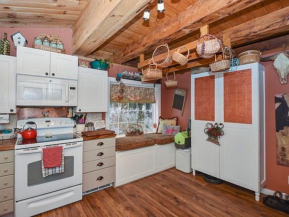 ***MULTIPLE OFFERS - BEST AND FINAL DUE BY 8:00PM ON SUN 12/27*** This 2-bedroom Farmhouse is situated on 12 acres of farmland. Upon entering you will adore the cathedral beamed ceilings w/ skylights to let the sun shine through into the living room featuring a wood-burning stove that keeps the whole house warm & cozy. The spacious updated kitchen is a place where you will enjoy cooking meals offering ample cabinet & countertop space, a beautiful Mexican copper sink, black walnut countertops & a wonderful window seat to sit and enjoy the sun and your views. A full bath, a first-floor bedroom & a 3 season porch complete the main level. Tucked away upstairs you will find the master bedroom. Your new home offers a 2 stall barn with power and an adjacent tack room & an additional Post & Beam shed as well as several other out buildings throughout the property, a stream at the backside of the property, and a small pond by the driveway as well as blueberry bushes, pear & peach trees!