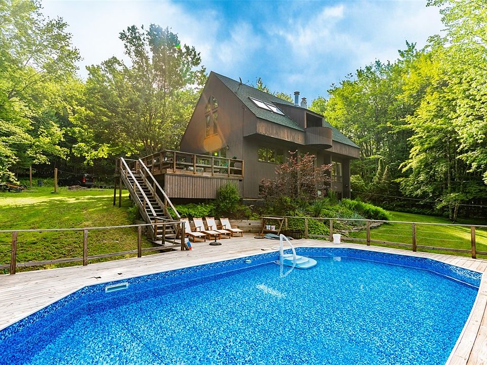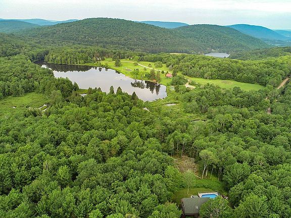 Modern lake house in one of the best neighborhoods in the Catskills. Set on 5 acres, this 3 bedroom 2.5 bath home includes a pool and a wraparound deck. It is the ultimate upstate home for entertaining. Walking distance to Tunis lake and the tennis courts. This is a 3-level home with tall ceilings, big windows, and an open floor plan. There’s a double-sided fireplace on the main level, facing the dining room and living room. The gourmet kitchen features a 6-burner Wolf range, quartz countertops, kitchen island, and wine cooler. The sliding glass doors lead directly to the deck where you can entertain and soak in the mountain views. The finished lower level includes a family room, full bath, and bedroom. There is high-speed internet for remote work. Only a 32 minute drive to Bellayre Ski Mountain. This home would make an excellent vacation rental year-round. 16 mins to Delhi, 8 mins to Bovina Center, and 7 mins to Andes, the location for fine dining and shopping in the Catskills can not be beat. 2 hours 36 mins to the GW Bridge. This is a rare opportunity to enjoy designer living in the serenity of the Catskills.