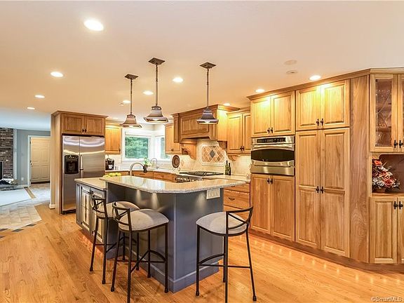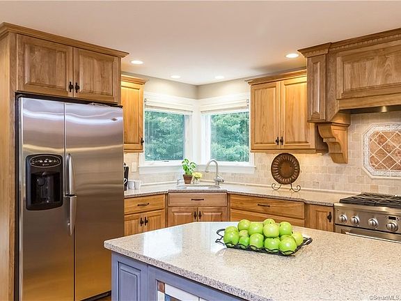 Ideal location for this lovely Gambrel Colonial, set on a meticulously landscaped, level lot at the end of a cul-de-sac. EXTRAORDINARY custom kitchen, beautifully remodeled, offers every conceivable amenity and is designed to make the chef part of the party! Red birch cabinetry, quartz countertops, expansive center island, fabulous designer lighting, state of the art commercial grade appliances including a GE Advantium oven and brand new 2017 GE Monogram dual fuel range ($8000!), plus a spacious dinette area... what a wonderful spot for family and friends to gather! Other first floor highlights include charming living room/den, and family room with sliders to deck overlooking private backyard and stunning perennial gardens. Upstairs are 4 bedrooms including an ensuite master, two full baths with cultured marble and corian vanities, and closets galore. The living space continues in the finished lower level with an additional 540 sq ft including office and recreation room. Other amenities found at 39 Anthony~ updated Andersen energy efficient windows, central air, first floor laundry, new garage doors and openers. The deck is constructed with low maintenance "ipe" wood and has a retractable awning. What a fabulous place to call "HOME".