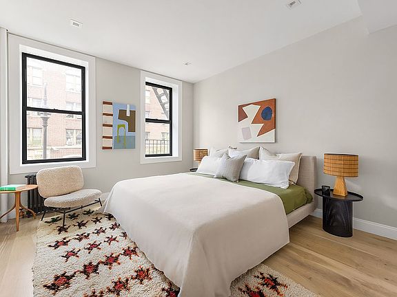Residence 1B is a 714 SF two-bedroom and one-bathroom, offering incredible value for the space and the quality. Units feature refreshing aesthetics and comfortable, good flow layouts that maximize incoming natural light. Modern and pre-war elements, such as exposed brick and industrial finishes, complement each other to establish a contemporary and neutral design. Kitchens include custom designed cabinetry with soft closing hinges and tracks, premium natural stone countertop, and a top-of-the-line appliance package. Bathrooms feature white subway wall tiles, custom vanities, harmonizing traditional and modern elements. Additional unit amenities: hardwood flooring, high performance central air heating and cooling system, audio/video Aiphone intercom and in unit washer/dryer. This is a non-elevator building which features a common outdoor courtyard.