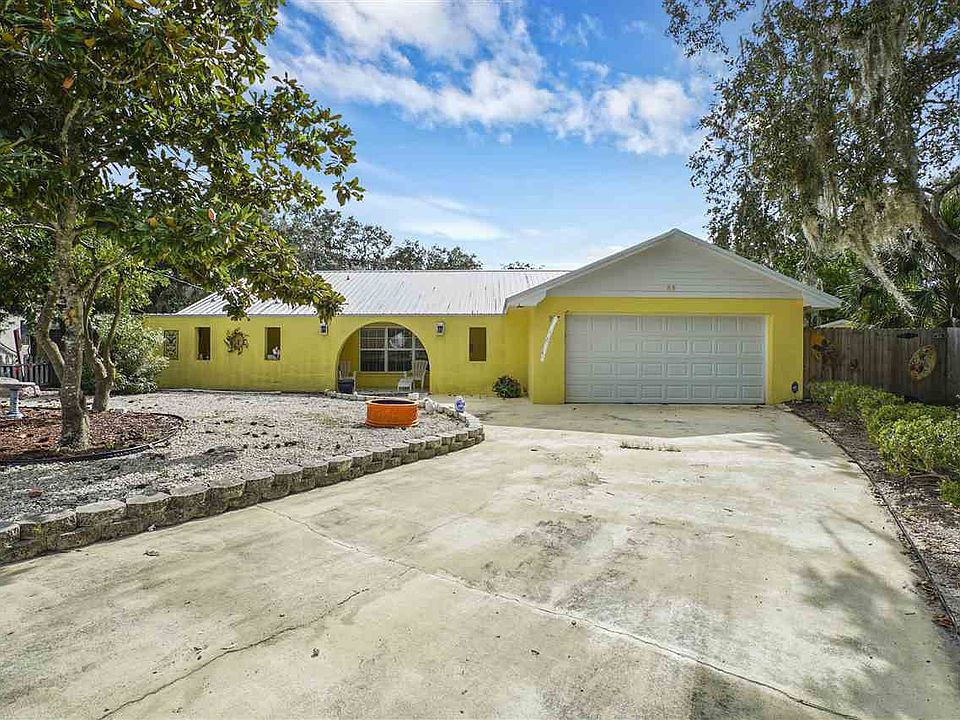 You can't beat this Surf Bungalow!! The location, price, and the convenience of no HOA is yours for the taking. This updated concrete block home with over 1900 square feet is tucked back in a low traffic neighborhood and walking distance to the beach. There is over a quarter acre of land to utilize and already has mature citrus trees, a fully fenced in backyard, and a front porch that will surely be graced with good company. The split floor plan, two car garage, and walk in laundry room guarantee there is plenty of room for the family. Newer metal roof, appliances, A/C, flooring, and additional updating have already been taken care of by the seller. You will not find anything with this much square footage or land on the east side of A1A Business at this price point.