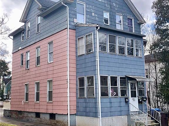 Plenty of potential with this 3 family home set on a large level lot. Tons of off street parking. 2 beds and 1 bath on each floor with dining room/3rd bedroom, living room and large kitchen area. Separate gas boilers and hot water tanks. 3-100 amp electrical services, plus owners panel, and fire alarm system. Vinyl Replacement windows 2009, newer roof 2012.