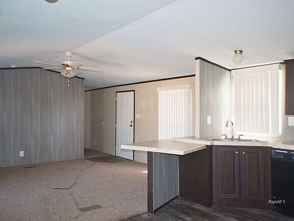 This 2016 Oak Creek model mobile home has beautiful linoleum flooring and well maintained carpeting. Walk in and enjoy the vaulted ceilings and split floor plan. In the hallway are laundry hookups, which leads to a spacious master with its own attached bath. To the other side are two bedrooms that share their own bath. Enjoy a modern kitchen with GE appliances and lots of counter space, along with a covered wooden patio-- perfect for entertaining. Park lot rent begins at $465/month, plus a 3% sales tax, and is separate from the purchase of this home. Seller financing is available. Call or message me today for details!