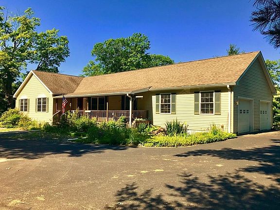 Bright & sunny ranch style home w/ 1 car garage situated on quiet country road! Inviting Farmer's Porch and fish pond out front with U shaped driveway. Walk in to livingroom open to fully applianced kitchen with island & dining area, sliders out to back deck overlooking peaceful back yard with beautiful gardens. Large master bedroom w/ private bathroom and walk in closet, another set of sliders out to back deck. Two more good sized bedrooms and another full bathroom all on 1 level! Mud room/den/bonus room off kitchen leading to garage & finished basement with walk out sliders to back yard, tons of storage!!! Secondary heating mini split units with AC!