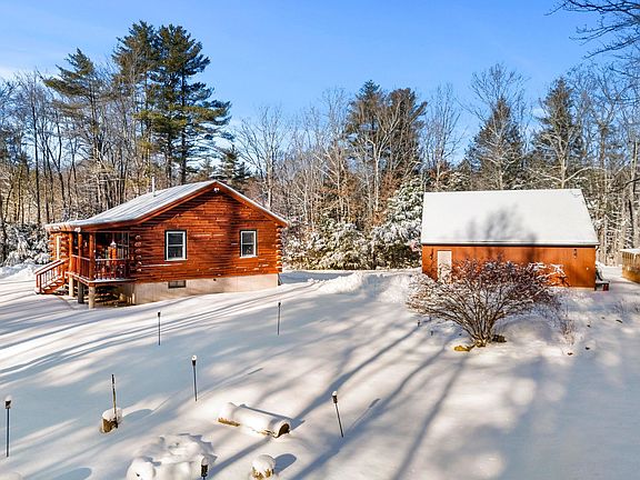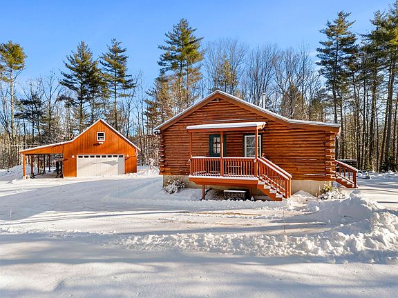 Ever dream of owning a secluded cabin in the woods but the 2hr commute to find the privacy doesn't make it realistic? Welcome to 39 Bassett Dr in Barrington NH, located minutes to Rte 125 and Rte 4. This 2 bed 1 bath also has an office in the basement and this log home sits on over 5 private acres on a dead end road; the only traffic on this road are the owners or those visiting them. The oversized two car garage has storage above and a carport on the side perfect for a boat or camper. You'll also find a greenhouse and a potting shed here as well. Whether you like to play your music loud, have parties, work on your bike, or cozy up while burning in a firepit, there's no close neighbors to complain here. Showings begin during the open house on Saturday January 25th from 11am - 1pm.