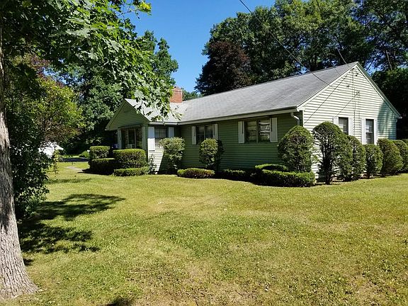 Beautiful corner lot for this 1236 sq ft Ranch with 5 rooms 3 bedrooms and 1 bath. 2 car garage with enclosed rear porch. Mature trees and shrubs. This home will need some updating but could be a showstopper when completed. Spacious rooms with open kitchen with breakfast bar open to the living room. Living room has a wood burning stove/fireplace. Brand new septic system is being installed by sellers for buyers peace of mind. full basement with high ceilings for future additional living space if desired. Home being sold "AS IS"