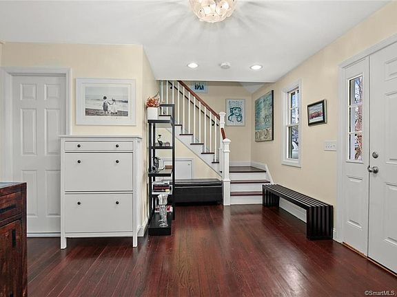 Move in ready 4 Bedroom Colonial, NOT in Flood Zone and only 1 MINUTE WALK TO YOUR PRIVATE ASSOCIATION BEACH! Enjoy swimming and lounging at the beach in this conveniently located water community! Fully renovated from top to bottom in 2013, this home features a versatile main level layout including a bedroom and full bath. Sunny living room with fireplace and built ins leads to large kitchen with separate bar area with wine cooler. Adjacent combination dining and family room area with sliders to patio and backyard. Convenient main floor laundry. Upper level features master bedroom with large walk in closet, sitting area, full bath, and a large deck to enjoy the summer months. Two other upper level bedrooms and full bath. Central Air, Gas Heat, City Water and Sewer. Just a two minute drive to renowned Chelsea Piers! Ten minutes to Metro North Railroad and Downtown Stamford.