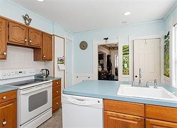 This well loved home features a spacious living room opening to a dining room perfect for entertaining. The first floor offers a flagstone hallway leading to the kitchen with a center island, ceramic sink and oak cabinets plus convenience of 1st floor laundry. The dining room has an attractive stained glass window, built-in china hutch, recessed lights and newer vinyl plank flooring. An enormous living room has plenty of natural light with built-in shelving and neutral carpeting. A front porch and a mud room leading to the partially fenced yard complete the first floor. On the 2nd floor, the large master bedroom has double closets & extra storage. Two other bedrooms along with a remodeled bath complete this level. A walk up attic has the possibility of more bedrooms or additional living space. Highlights include replacement windows, vinyl siding, boiler replaced 2008 & newer H2O heater 2017 (APO). Ask about $5000 grant with BUY Holyoke Now! Showings begin at open house.