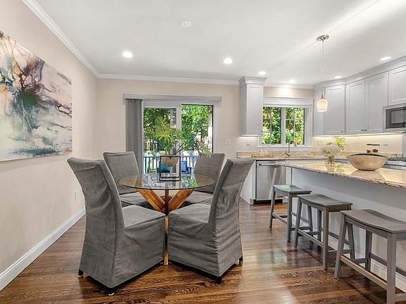 Spectacular 2016 renovated & expanded Newton Highlands townhouse. Fabulous open floor plan w great flexibility for use of space. Soaring ceilings, an abundance of natural light, this home has high quality finishes & lovely detail. The living room has a fireplace, cozy window seat & is open to the generously sized dining room. The kitchen w island, has granite counters, stainless appliances & has a sliding door to a private deck that overlooks the lovely yard. There is a bedroom or perfect home office option on the 1st floor, w full bath. There are 3 bedrooms on the 2nd level, including a luxurious master suite w beautiful master bathroom & walk-in closet. Laundry is on the 2nd floor. The LL is heated & has a huge mudroom off the garage. There is a fabulous semi finished room, providing ample storage. Super convenient location, walk to MBTA, shopping, schools, dining, Cold Spring Park, tennis & trails, Crystal Lake & major routes. Garage parking. Home is pre-wired for audio/visual