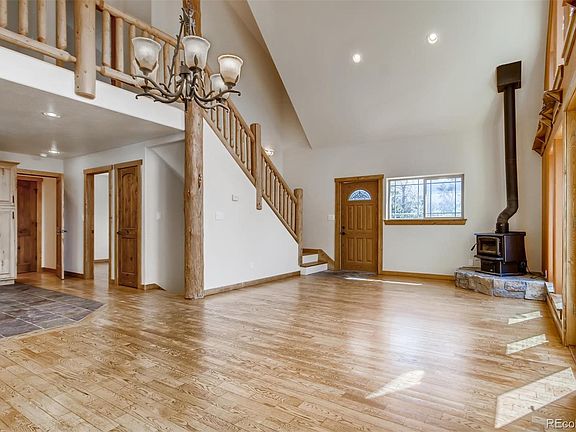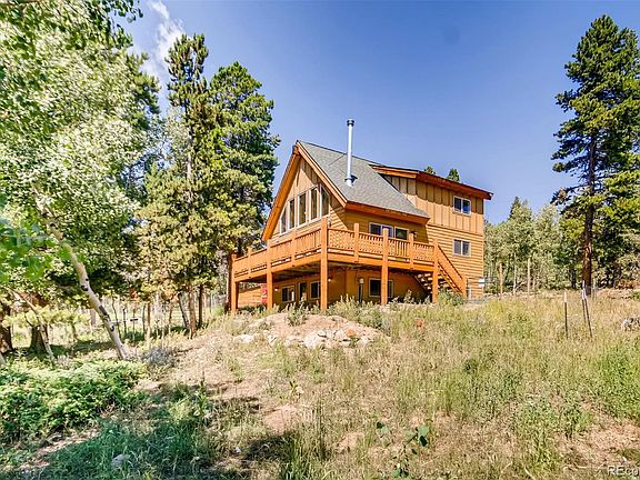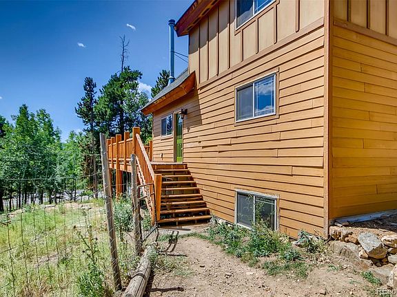 Updated Mountain Home with Newly Finished Walkout Basement. New Paint Throughout. Convenient and Easy Access To Peak To Peak Hwy. Unique layout features 3 Bedrooms, One on each level and 3 full bathrooms, one on each level. Great for privacy. Structurally Insulated Panel (SIP) panel construction. High R-value insulation keeps bills low and aids in noise reduction. Hydronic radiant floor heating system on each level. No air ducts to clean or maintain. Quiet! Side arm domestic hot water supply run from high efficiency boiler provides ample supply for long showers or baths. Natural gas range, heat, domestic hot water, and dryer. Septic has brand new control panel and 1 year maintenance agreement paid. Septic already inspected and pumped. Newly refinished Hardwood floors on main and upper level. New custom solid wood trim throughout. Solid Wood Doors and Closets Throughout. Wood burning stove with built in fan. Ceiling fans in each bedroom plus family room. Fully fenced with barn and chicken coop. This is a great, well constructed mountain home.