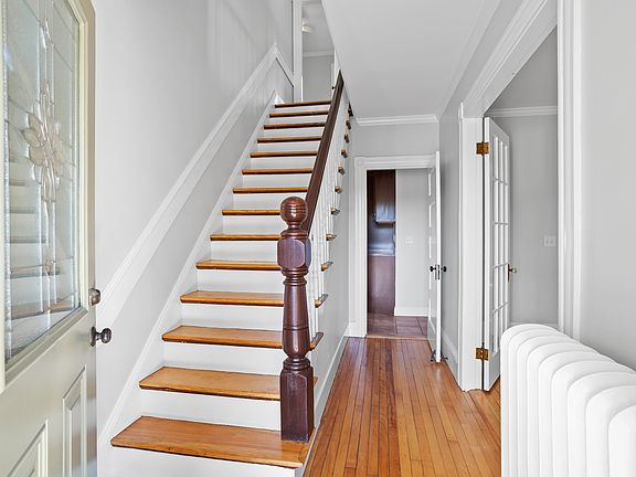 Charming, fully renovated antique with a freshly painted interior, blending character with modern comfort! The spacious kitchen features cherry cabinets, stainless steel appliances, tile flooring, and a sunny eat-in nook surrounded by windows perfect for morning coffee. A formal dining room and cozy living room with French doors create inviting spaces to gather. Enjoy two beautifully updated full baths, first-floor laundry (washer/dryer included), and a handy mudroom. Hardwood floors throughout, plus three generously sized bedrooms upstairs. Relax on the welcoming mahogany front porch or enjoy the large yard with storage shed. Private paved driveway, huge attic and basement for extra space. Nestled on a side street, yet close to everything Hudson has to offer. No Pets. No Smoking. First, Last & Security Deposit required. One-year lease minimum; longer term available. Renter required to have renter's insurance. Available for occupancy now.