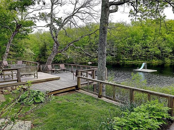 The Long Pond-Ell Pond preserve is a Rhode Island natural treasure, and this is a rare opportunity to own a home in its midst. Perched on the edge of Long Pond sits a fully re-built (1998) gracious Contemporary home in superb condition. The open floor plan, with a traditional aesthetic, was designed to capture both expansive and intimate views of Long Pond and all its natural wonder as well as dramatic ledge outcroppings framing carefully-designed gardens that merge with the landscape. This exceptionally serene and pastoral setting boasts over 450' of direct waterfront and 7.5+ acres. Surrounded by 430 acres of conservation land, it provides extraordinary privacy without parallel, whether inside or outside on multi-level decks enjoying the sights and sounds of uninhibited nature. A separate studio connected by a covered walkway easily converts to 4th bedroom. Hiking trails surround the pond and connect with a trail system that extends into CT. Swimming, kayaking, canoeing, paddle-boarding, fishing.... plus western views resulting in phenomenal sunsets that stretch across the pond. One of a kind; a truly rare opportunity not to be missed.