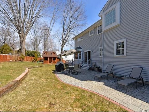 Updated colonial set at the end of a cul-de-sac in the Long Hill area of Trumbull. Featuring an open floor plan, spacious eat-in kitchen w/ corian counter tops, tumbled marble backsplash, large butcher block island w/ seating opens to large fmly rm. Living rm w/ built-ins, brick frplc & mantle. Sunroom offers gorgeous space w/ cathedral ceilings & wall of windows. French doors lead to the patio, hot tub & rear grounds. Master suite is spectacular, cathedral ceilings, custom window, and full mstr bath. Three additional spacious Bdrms share another updated hall bth. Lower Level is finished & has a full bthrm, Outside, a stone patio runs most of the length of the home w/ two separate entrances in & out. Fenced in & private back yard. See add.