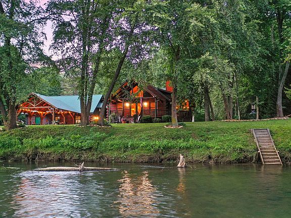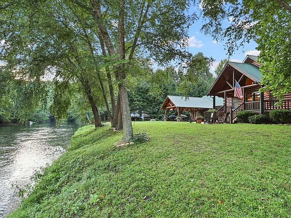 Stunning private Toccoa River front escape - minutes to downtown Blue Ridge! Meticulously maintained custom built cabin in a story book setting with hard to find river front privacy. Located directly on the trophy trout waters of the Toccoa River, this fly fisherman's dream features an open concept floor plan, vaulted ceilings, massive stone fireplace, and high end finishes throughout. Oversized primary bedroom with Ghis and herG closets, one level living and comfortable outdoor spaces that are perfect for entertaining, whether on the screened porch or grilling under the river front pavilion! No neighbors in sight on either side of you or across the river! Easy access along a welcoming tree lined driveway for added privacy with plenty of parking. Beautifully landscaped and hardscaped on a rare level lot with massive detached 3 car garage w/workshop area and plenty of room for all of your toys! Exceptional for full time living, weekend trout fishing getaway, or high income producing vacation rental!